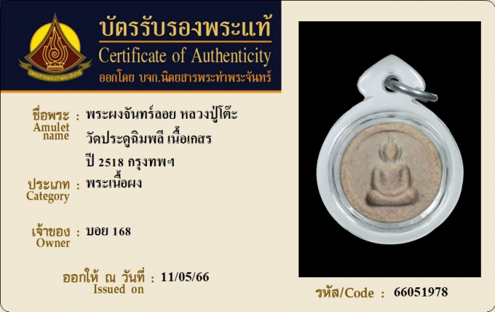 ค้นหาใบการันตีพระแท้