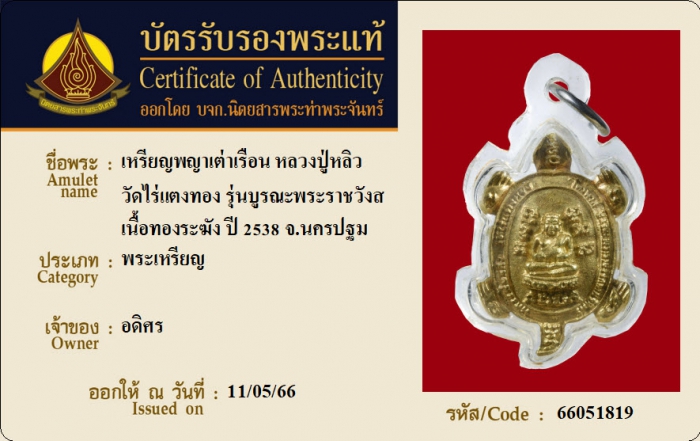 ค้นหาใบการันตีพระแท้