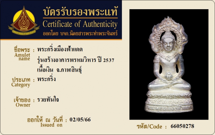 ค้นหาใบการันตีพระแท้