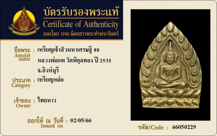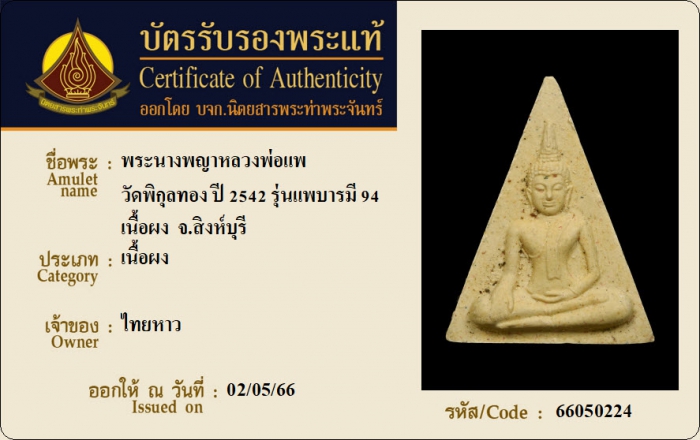 ค้นหาใบการันตีพระแท้