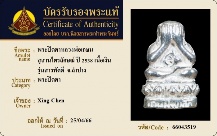 ค้นหาใบการันตีพระแท้