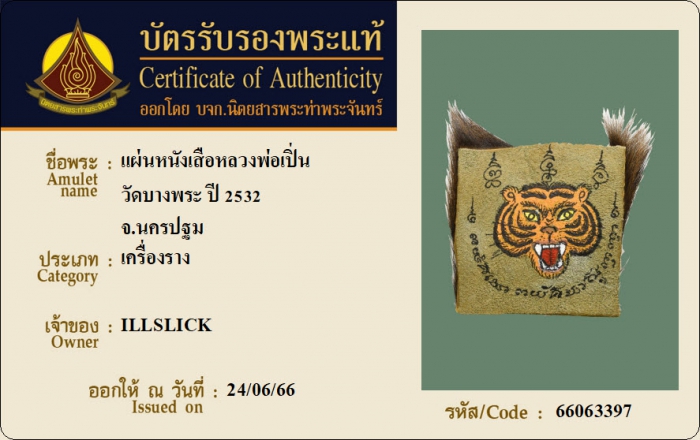 ค้นหาใบการันตีพระแท้