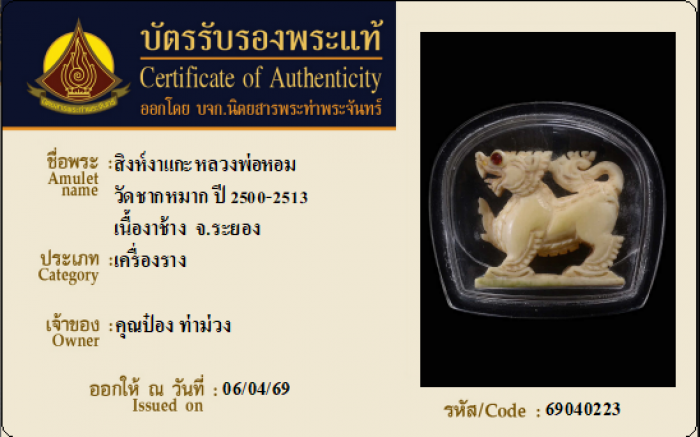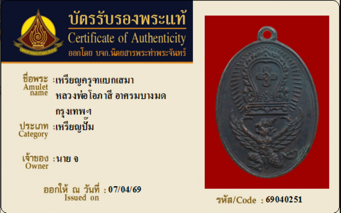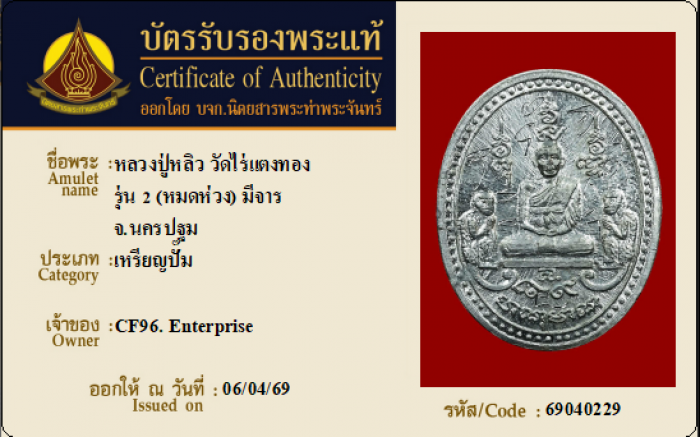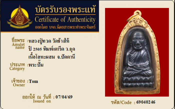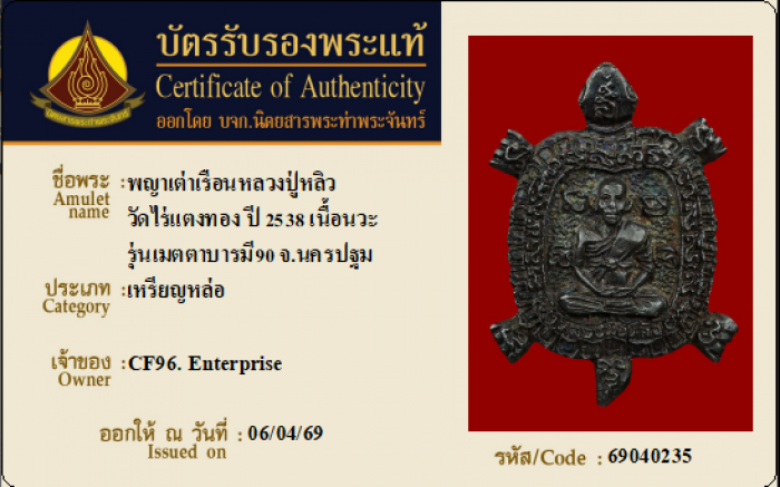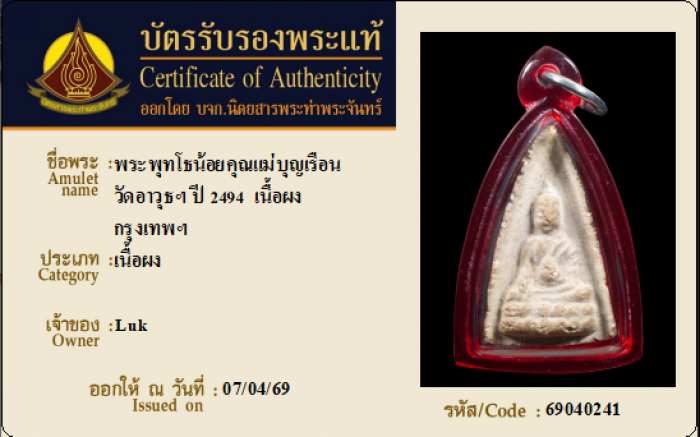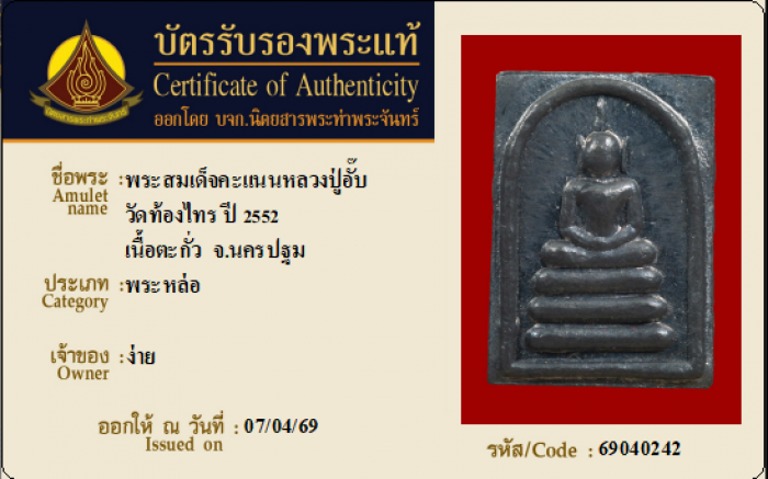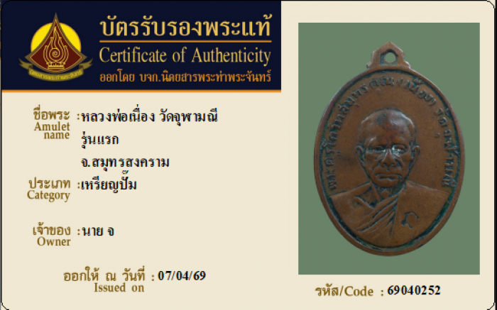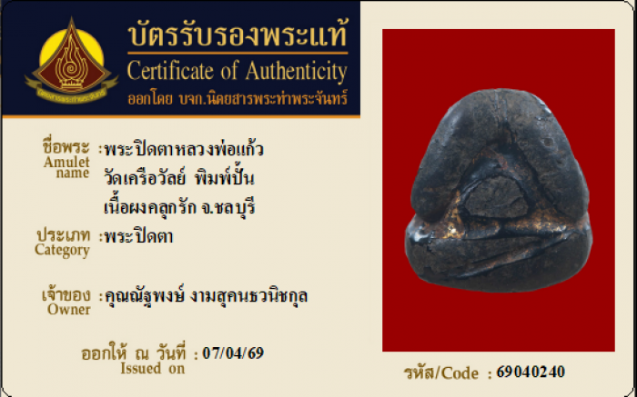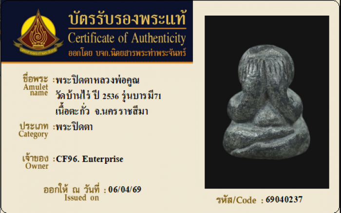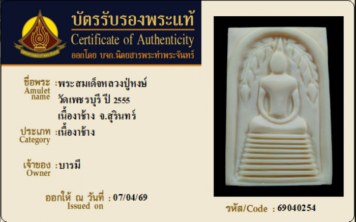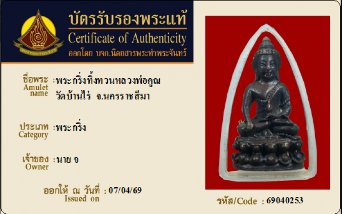 ค้นหาใบการันตีพระแท้