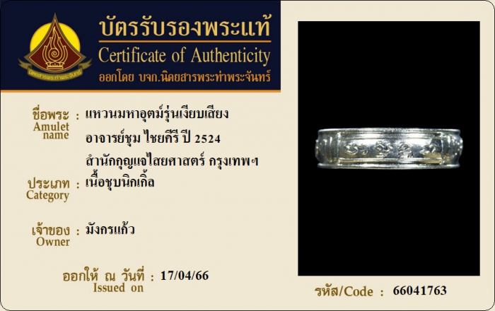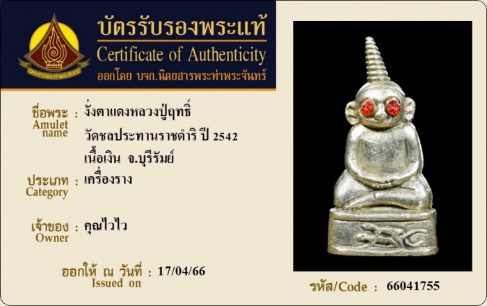 ค้นหาใบการันตีพระแท้