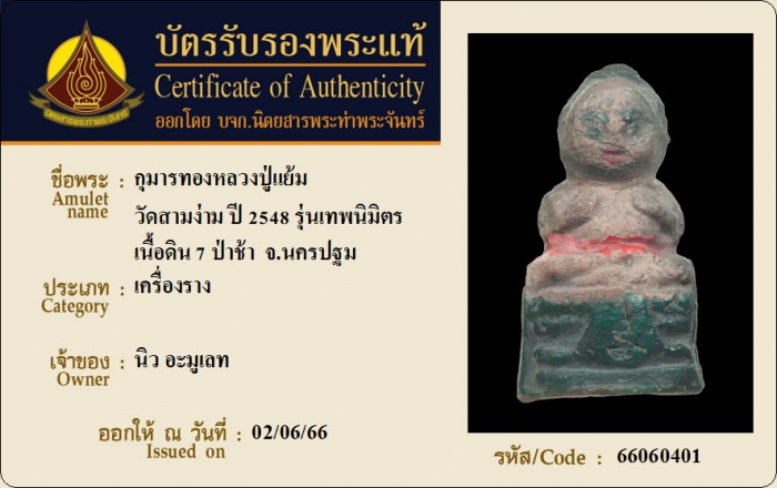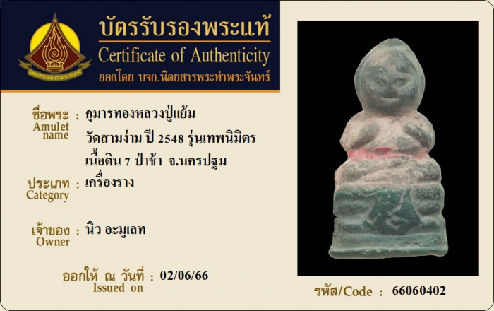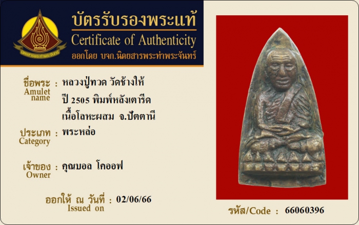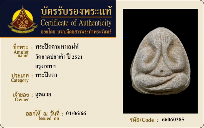 ค้นหาใบการันตีพระแท้