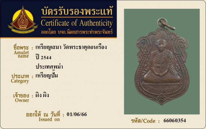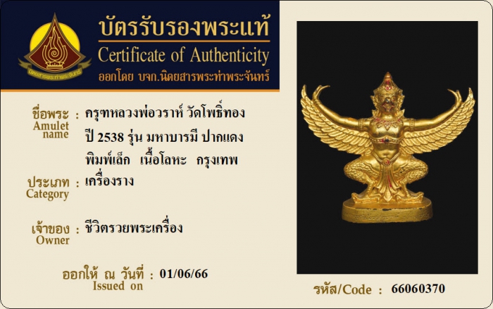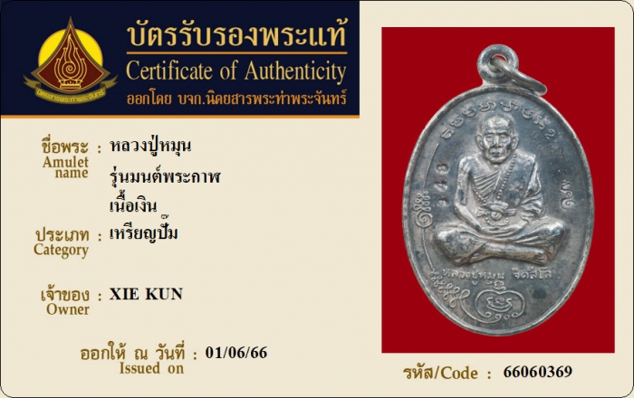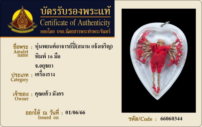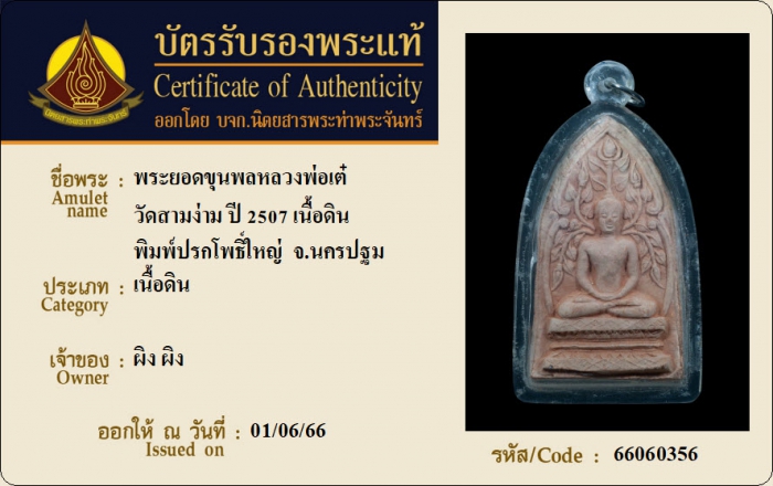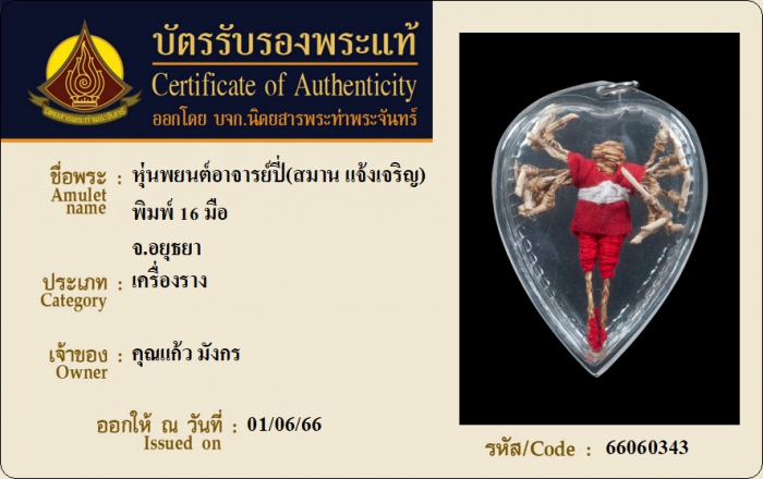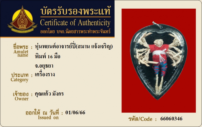 ค้นหาใบการันตีพระแท้