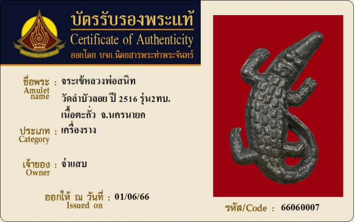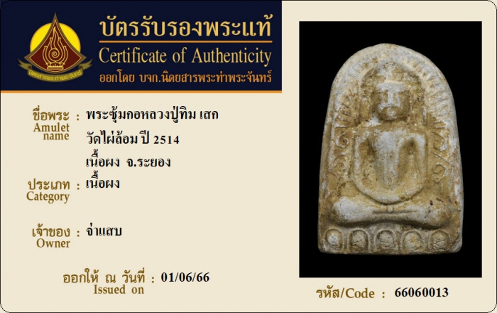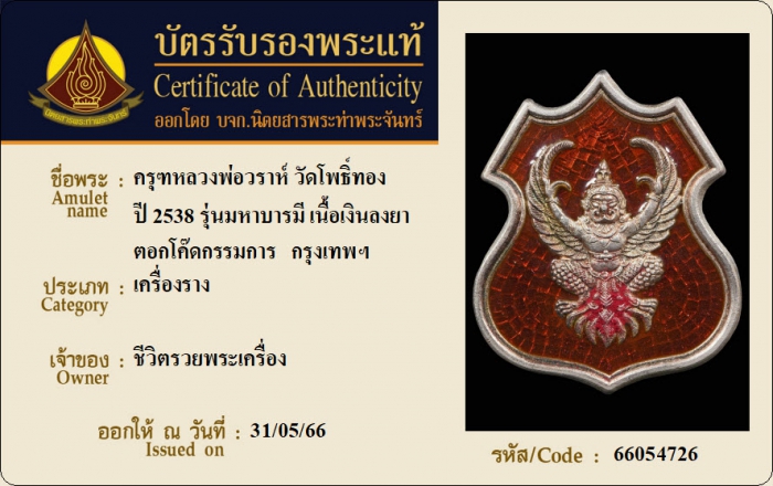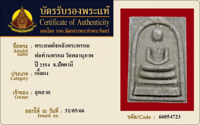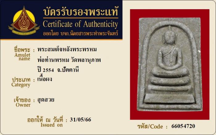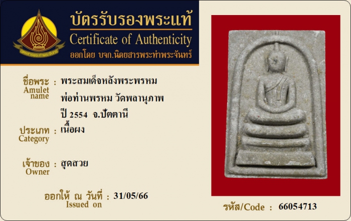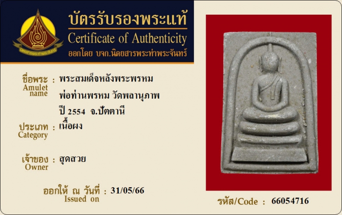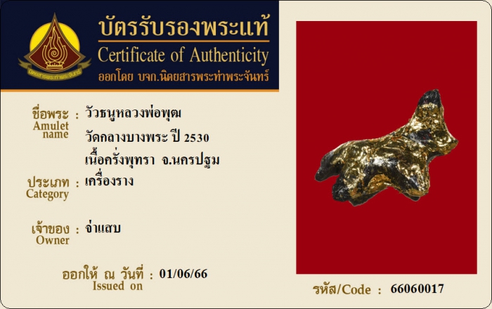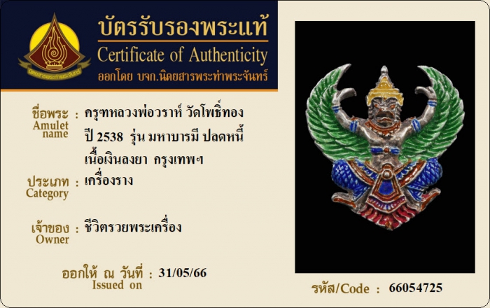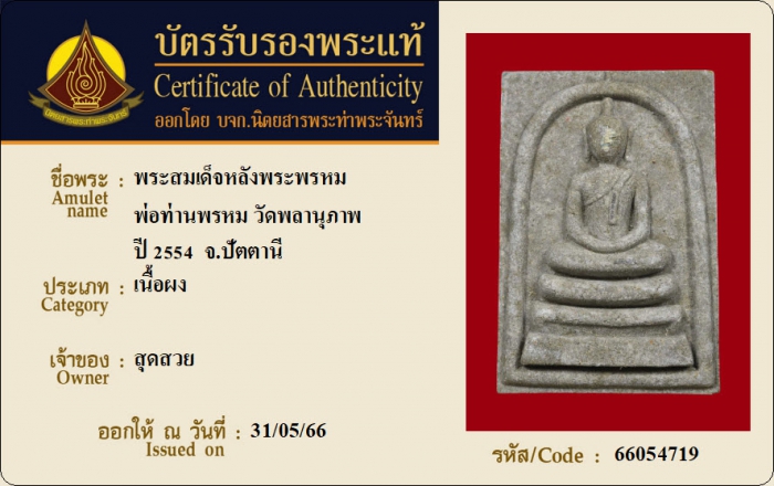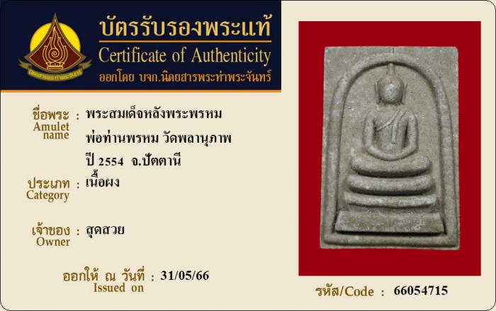 ค้นหาใบการันตีพระแท้