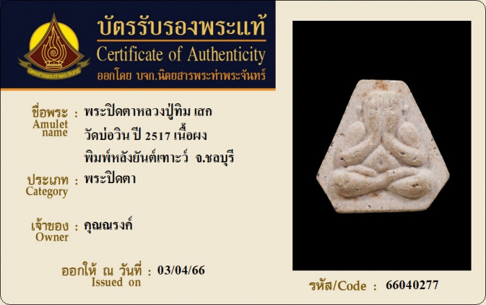 ค้นหาใบการันตีพระแท้
