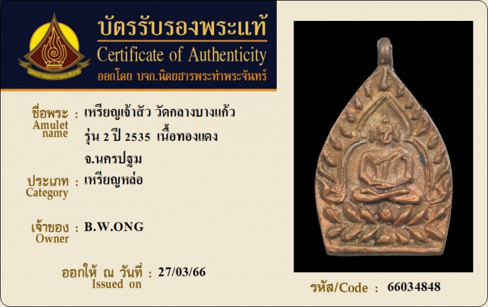 ค้นหาใบการันตีพระแท้