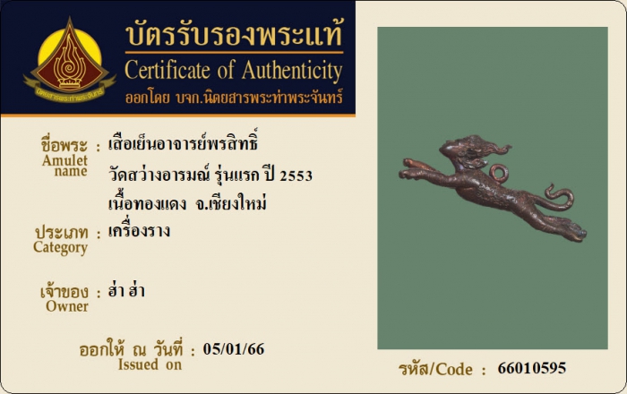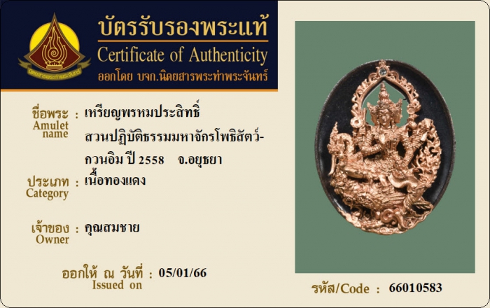 ค้นหาใบการันตีพระแท้
