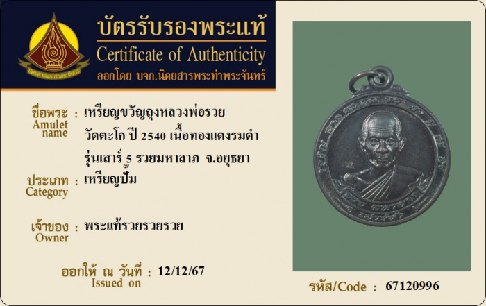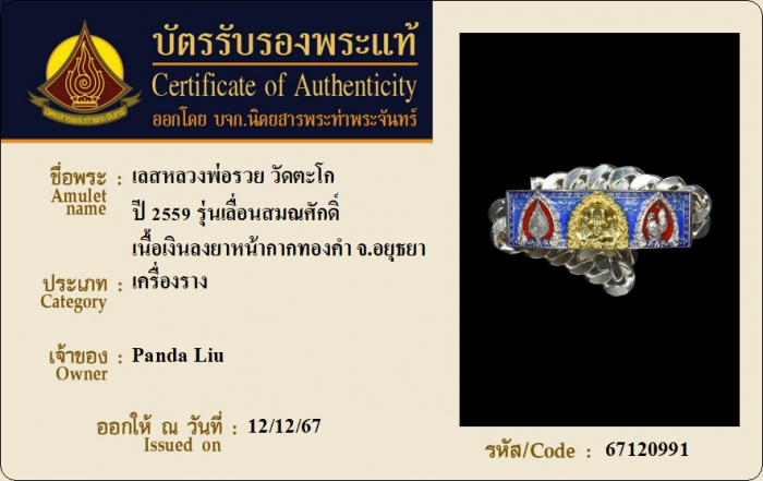 ค้นหาใบการันตีพระแท้