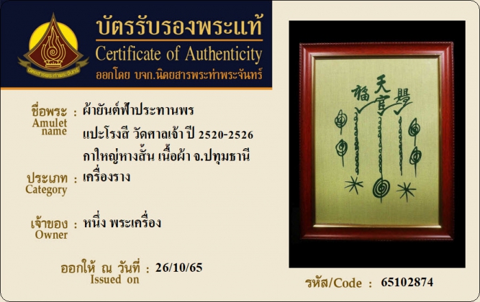 ค้นหาใบการันตีพระแท้