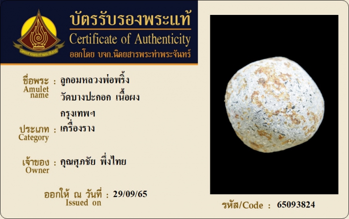 ค้นหาใบการันตีพระแท้