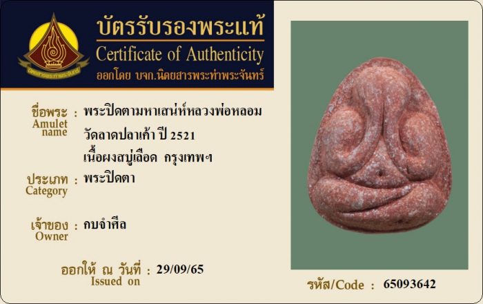 ค้นหาใบการันตีพระแท้
