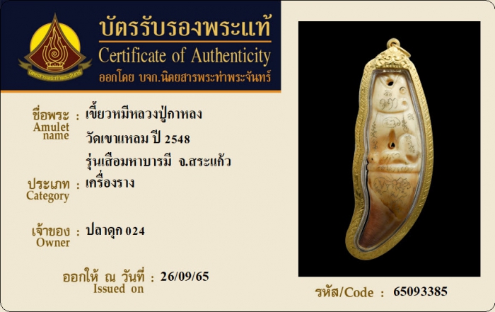 ค้นหาใบการันตีพระแท้