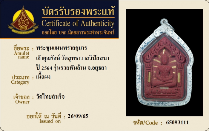 ค้นหาใบการันตีพระแท้