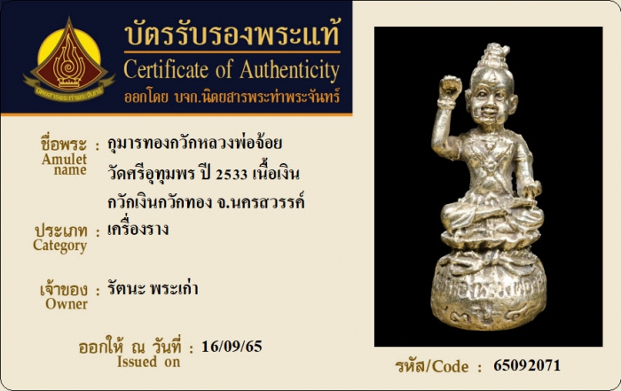 ค้นหาใบการันตีพระแท้