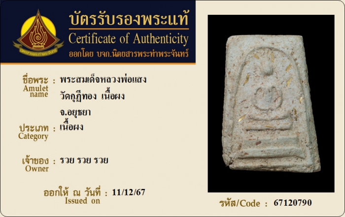 ค้นหาใบการันตีพระแท้