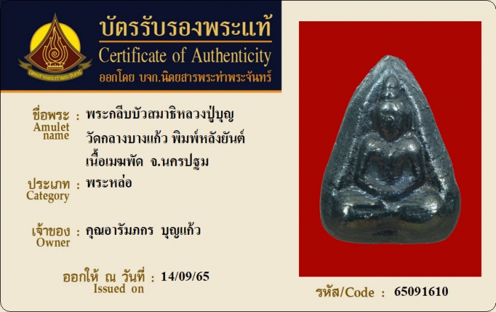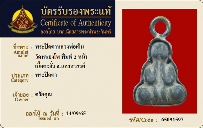 ค้นหาใบการันตีพระแท้
