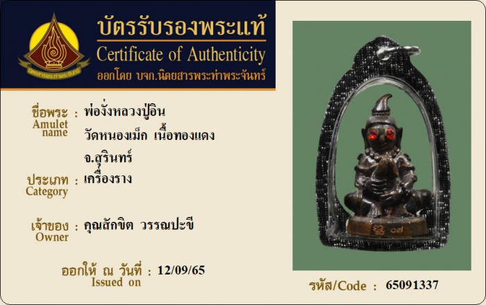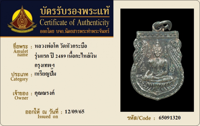ค้นหาใบการันตีพระแท้