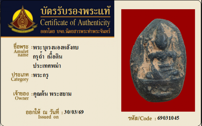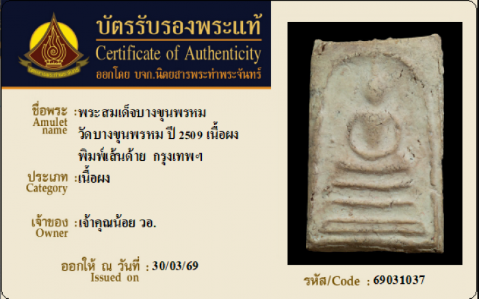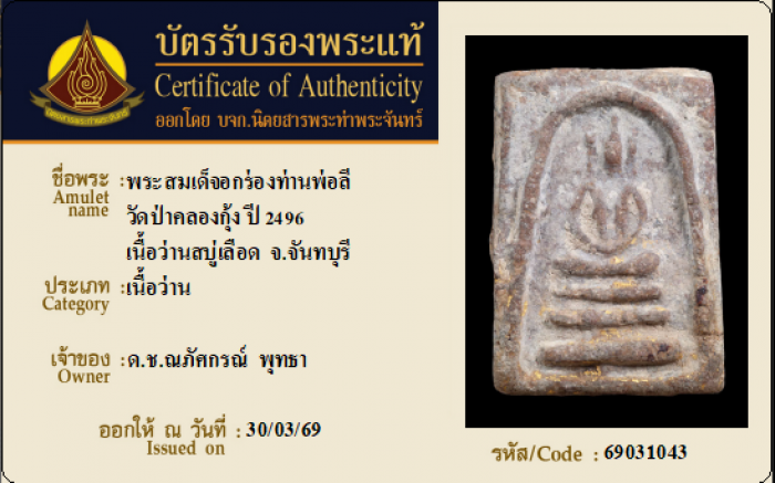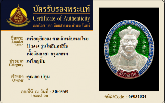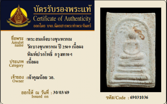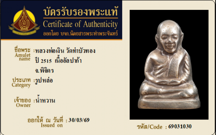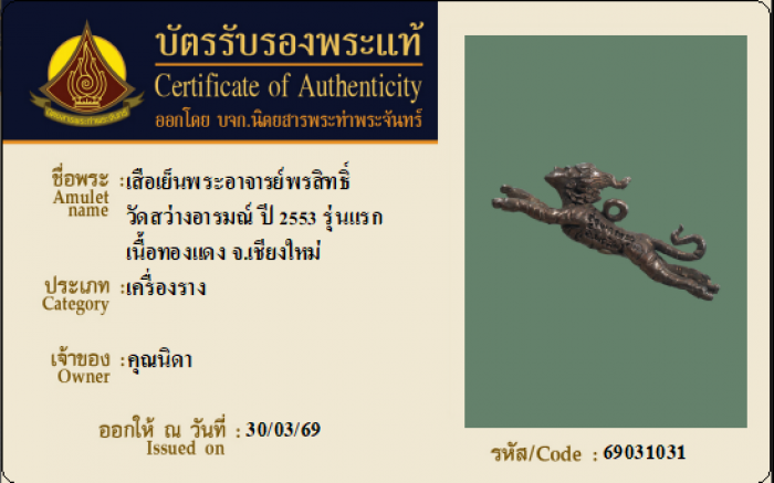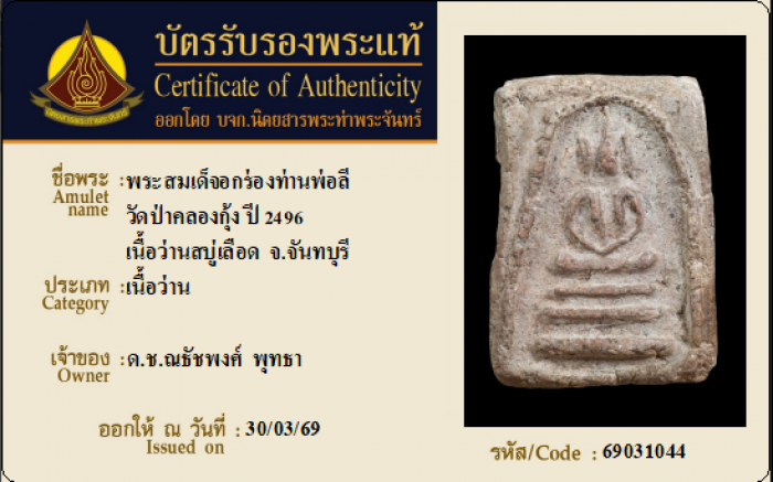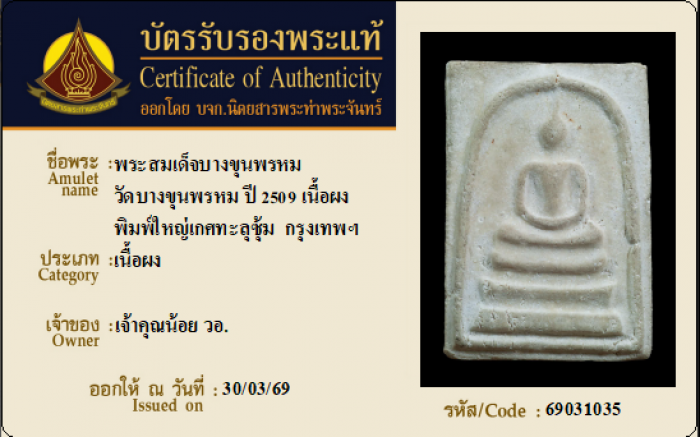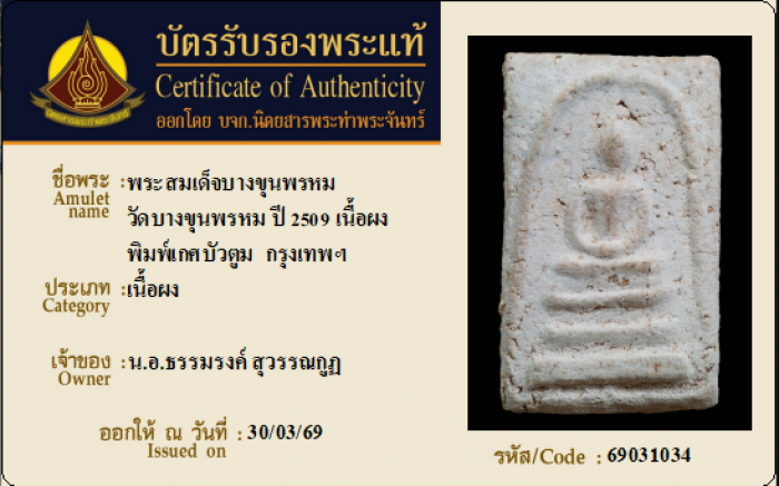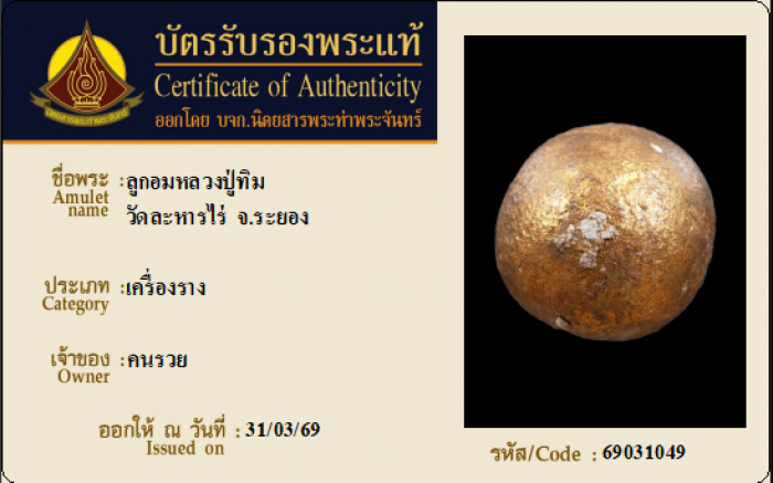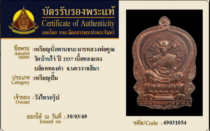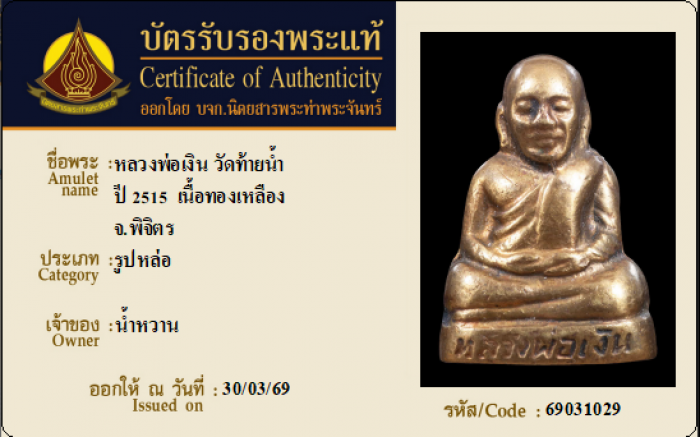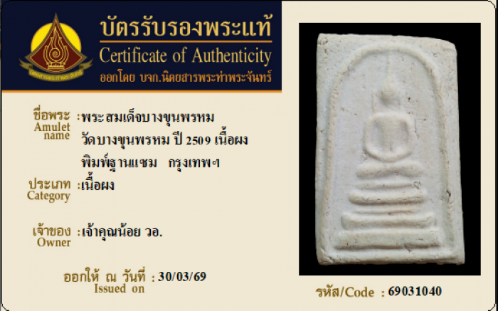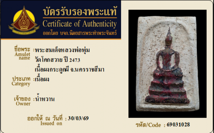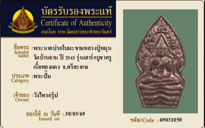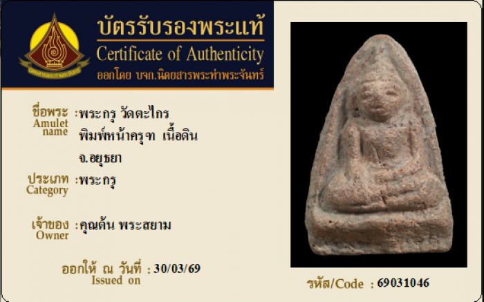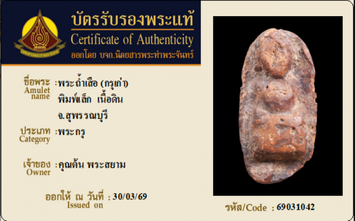 ค้นหาใบการันตีพระแท้