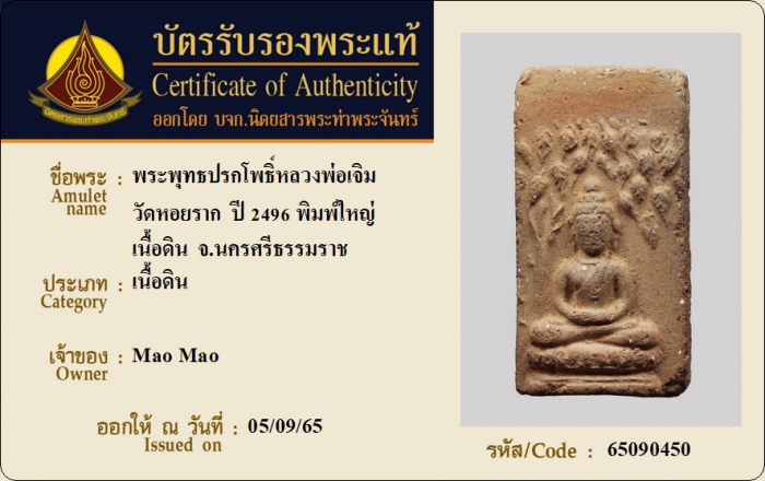 ค้นหาใบการันตีพระแท้