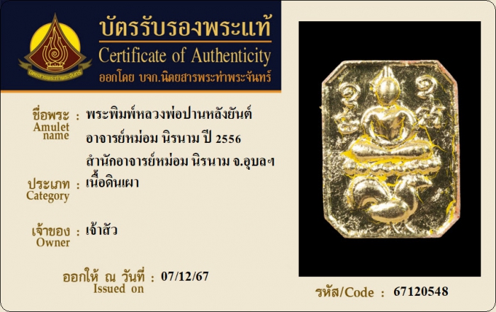 ค้นหาใบการันตีพระแท้