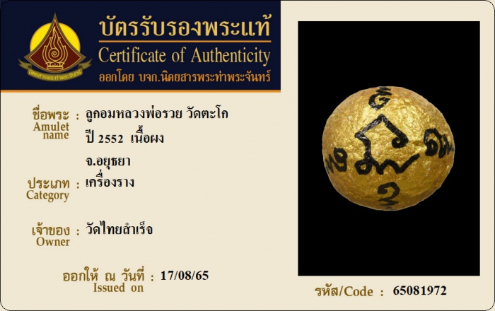 ค้นหาใบการันตีพระแท้