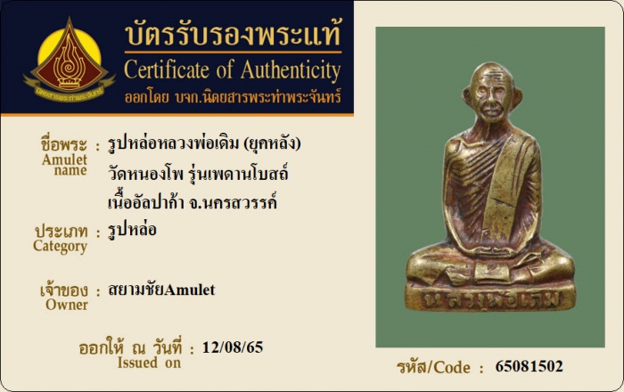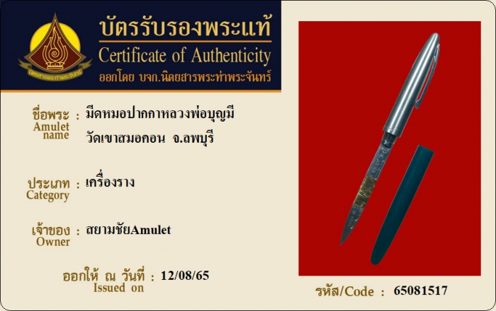 ค้นหาใบการันตีพระแท้