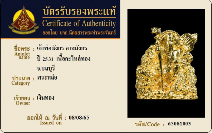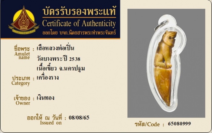ค้นหาใบการันตีพระแท้