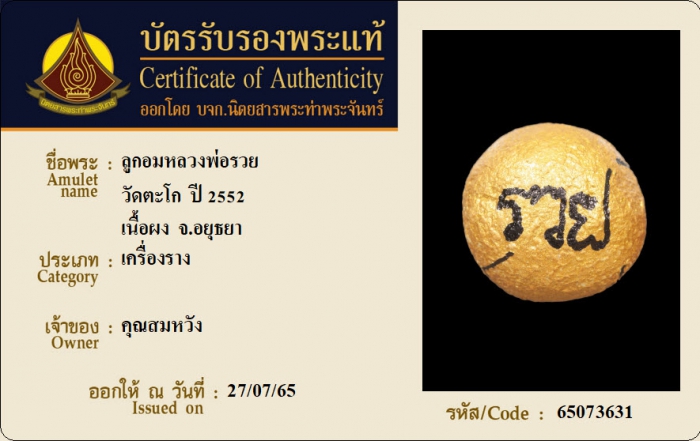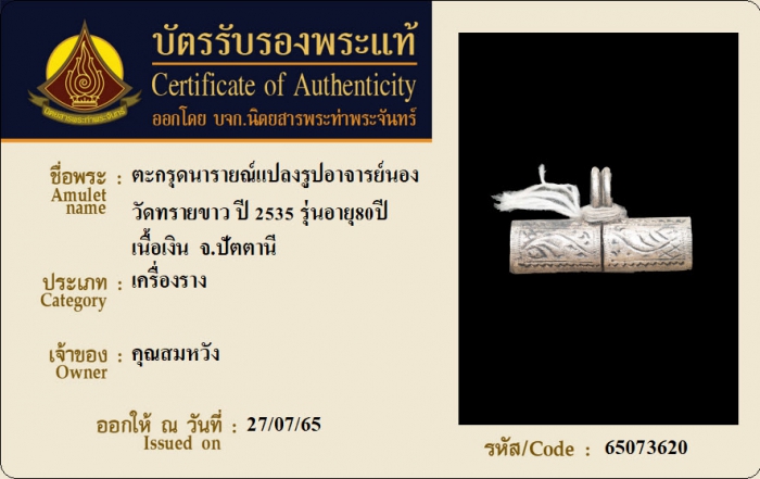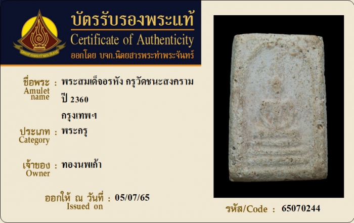 ค้นหาใบการันตีพระแท้