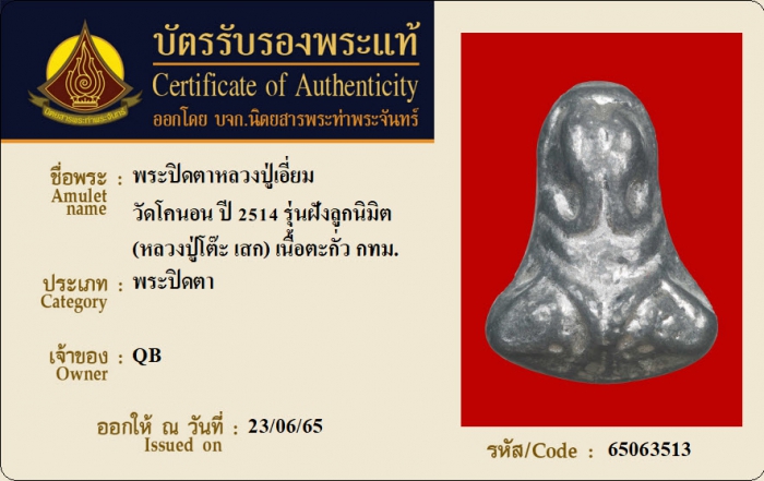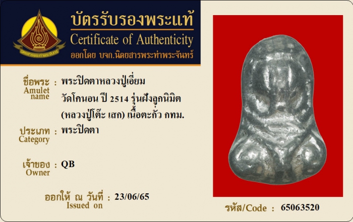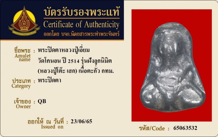 ค้นหาใบการันตีพระแท้