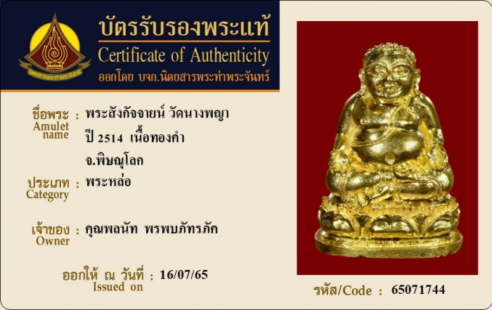 ค้นหาใบการันตีพระแท้