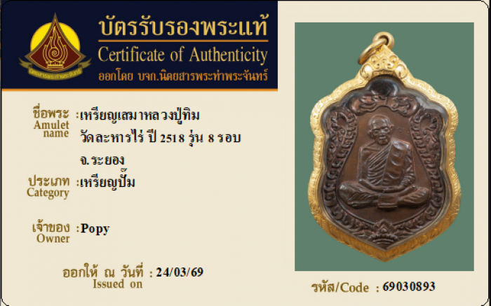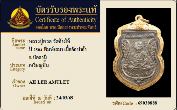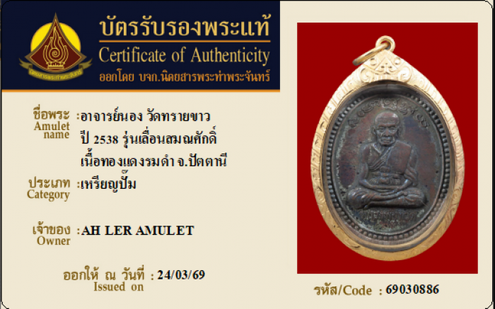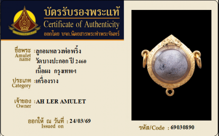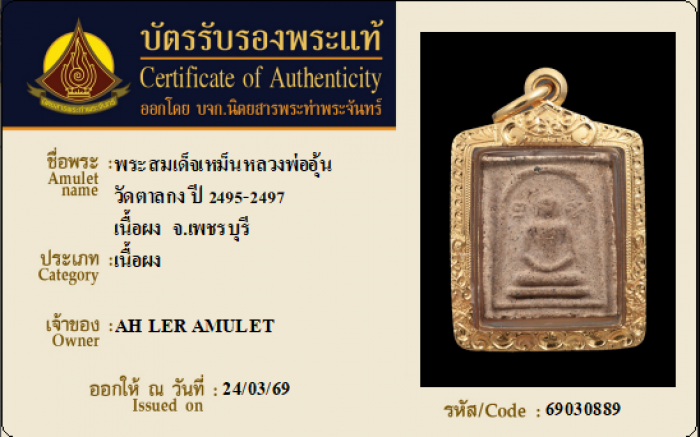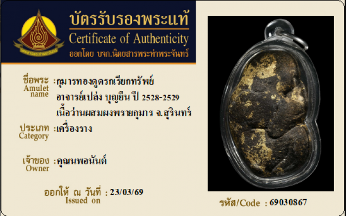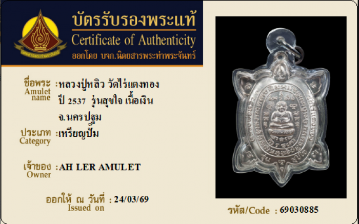 ค้นหาใบการันตีพระแท้