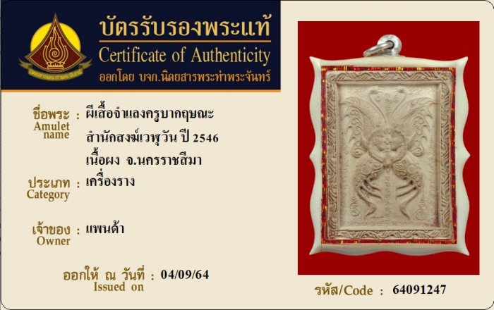 ค้นหาใบการันตีพระแท้