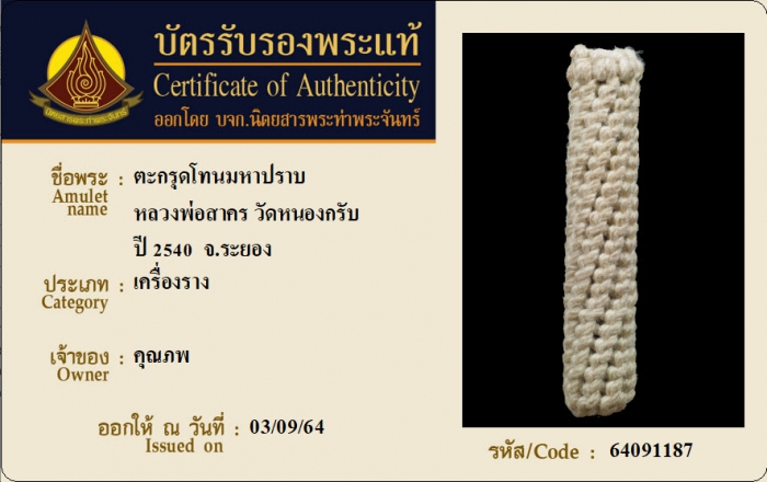 ค้นหาใบการันตีพระแท้