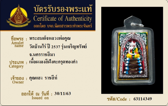 ค้นหาใบการันตีพระแท้