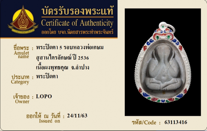 ค้นหาใบการันตีพระแท้