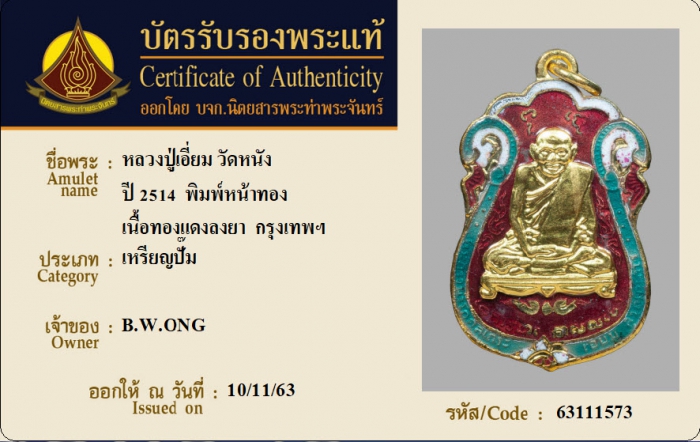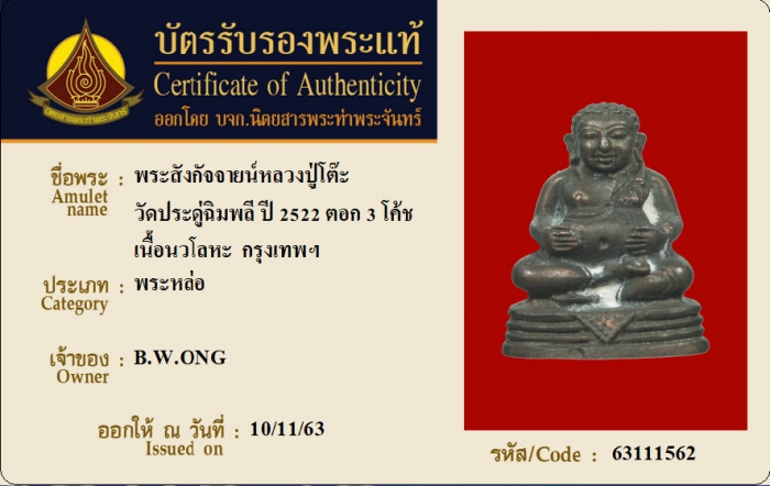 ค้นหาใบการันตีพระแท้