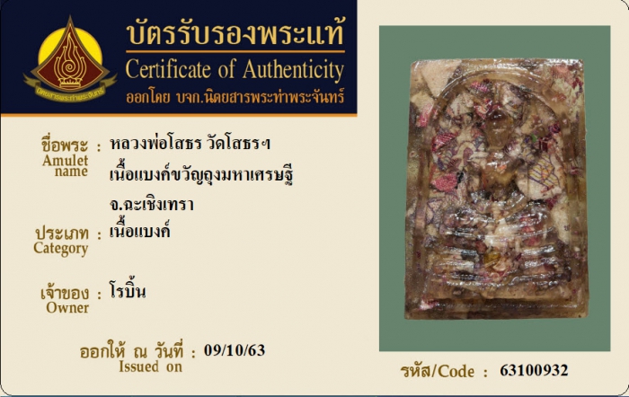 ค้นหาใบการันตีพระแท้