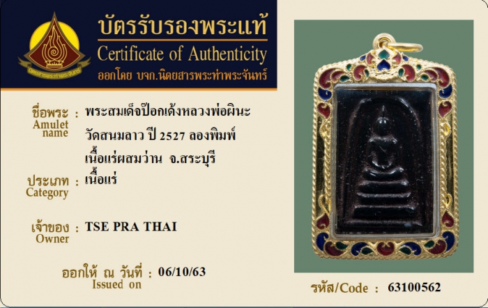 ค้นหาใบการันตีพระแท้