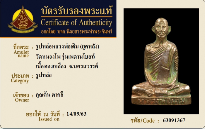 ค้นหาใบการันตีพระแท้