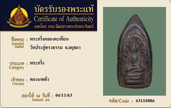 ค้นหาใบการันตีพระแท้