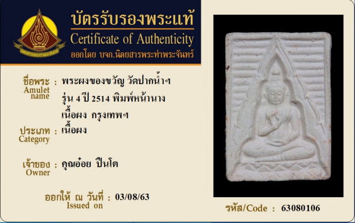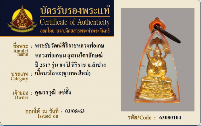 ค้นหาใบการันตีพระแท้