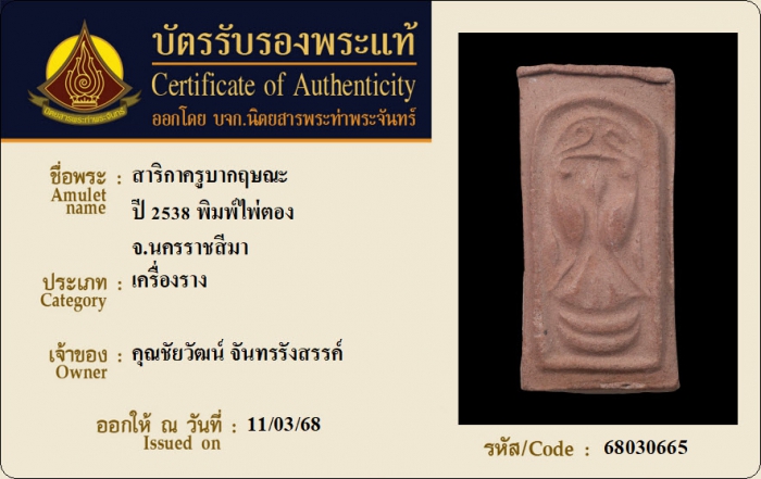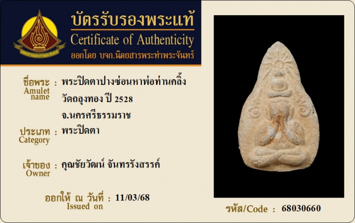 ค้นหาใบการันตีพระแท้