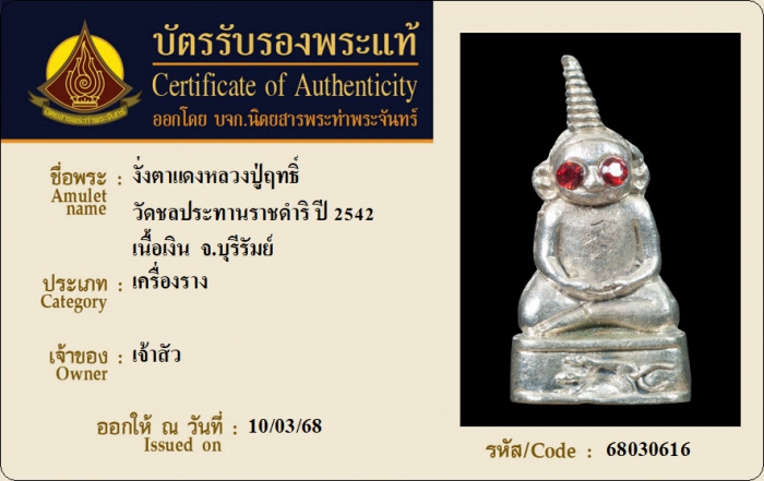 ค้นหาใบการันตีพระแท้