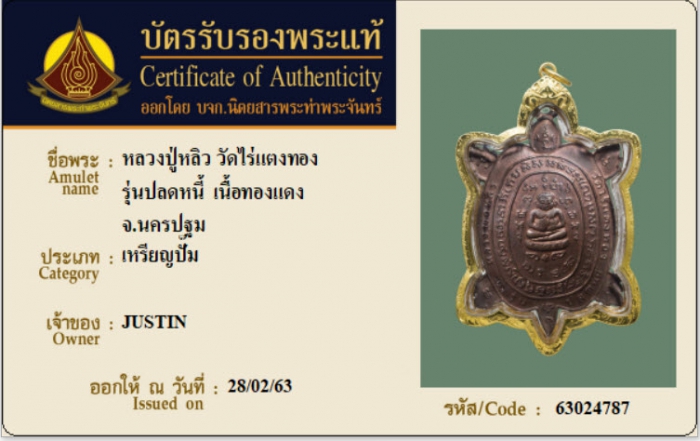 ค้นหาใบการันตีพระแท้