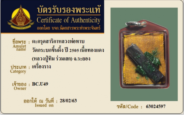 ค้นหาใบการันตีพระแท้