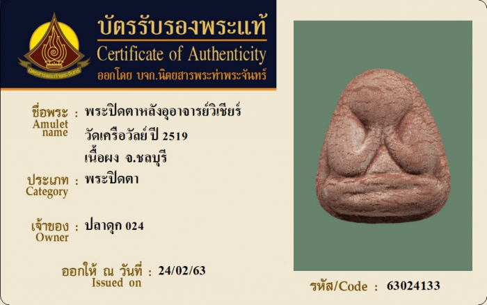ค้นหาใบการันตีพระแท้