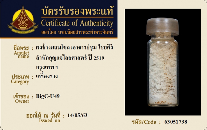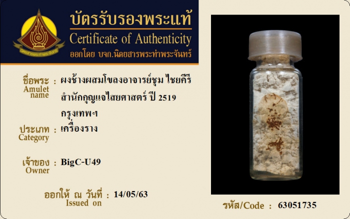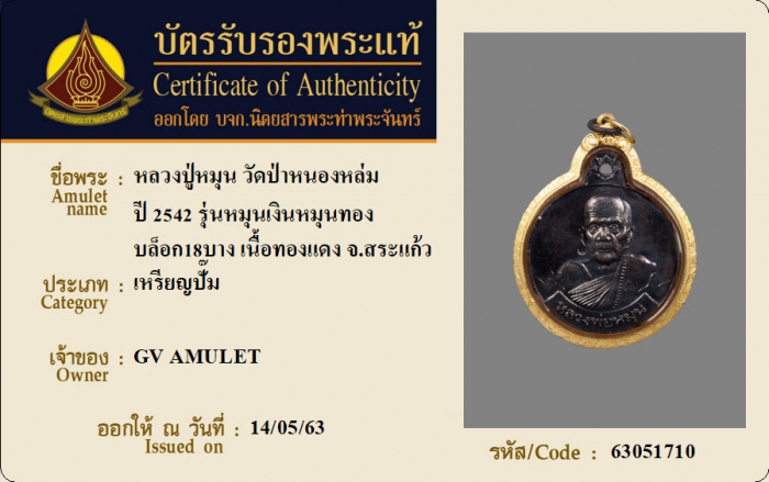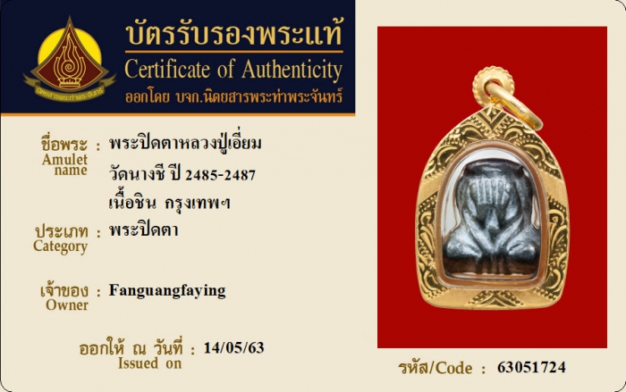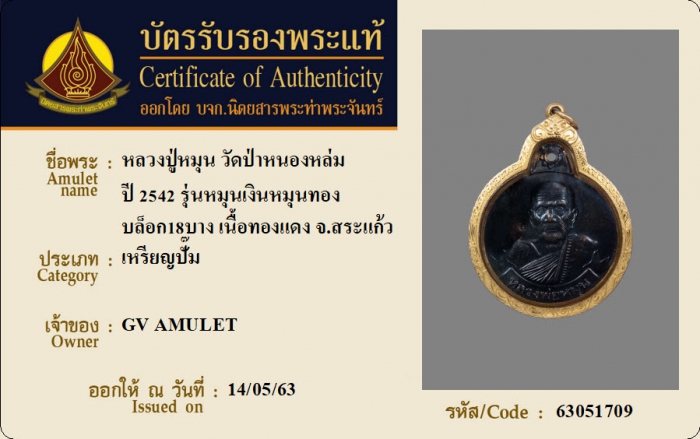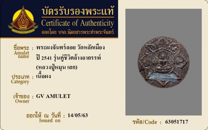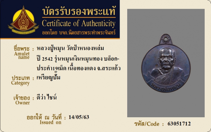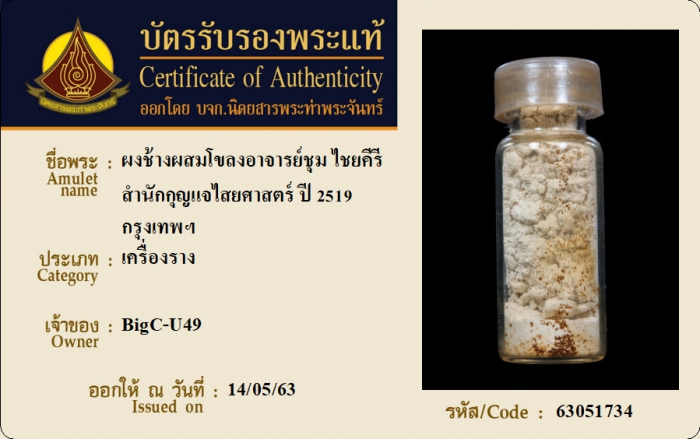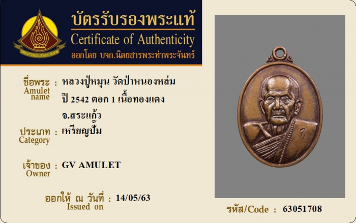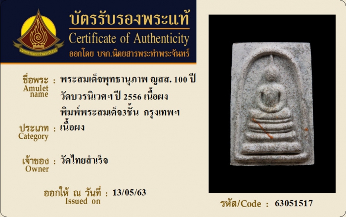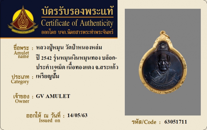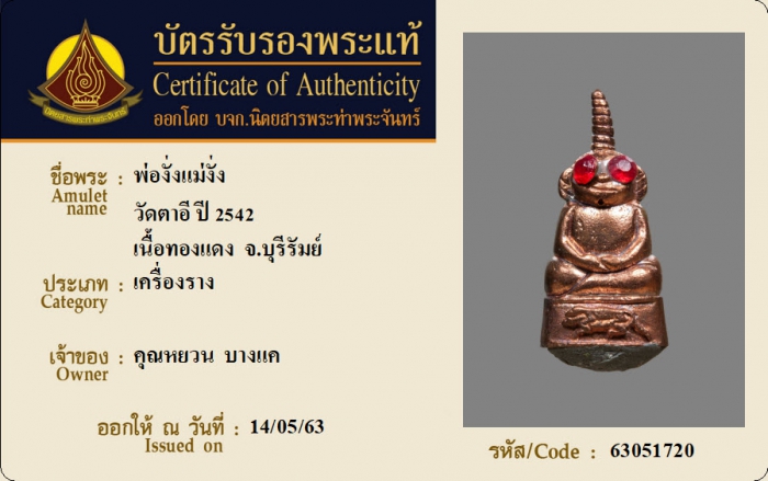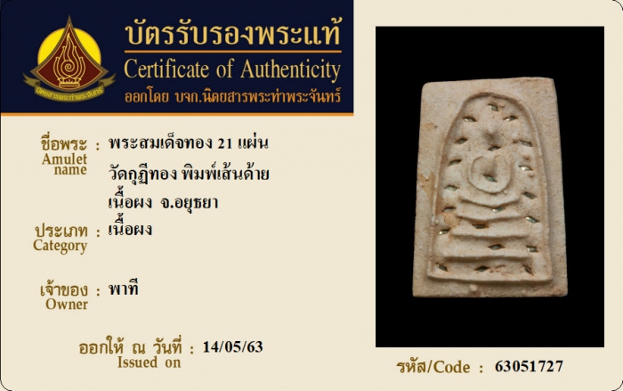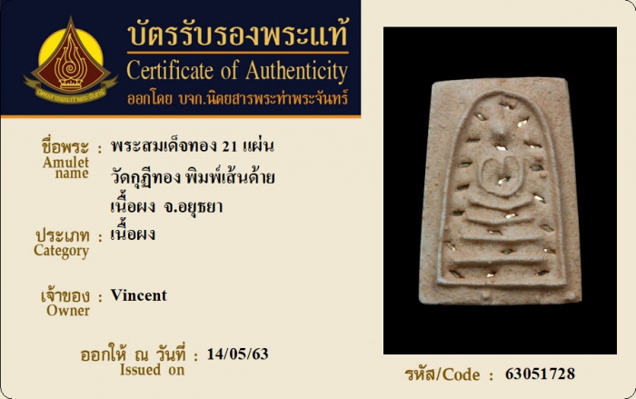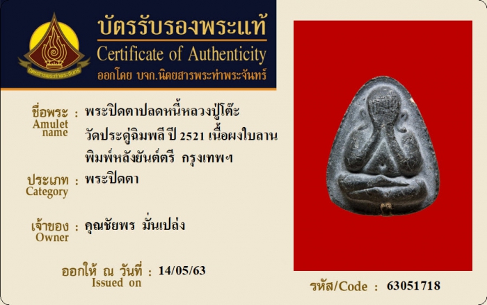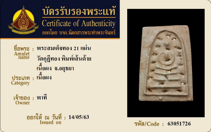 ค้นหาใบการันตีพระแท้